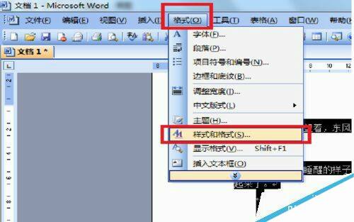 3、选择菜单栏上的【格式】——【样式和格式】;