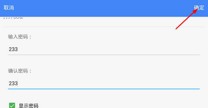 3、最后输入你的加密密码,点击右上方的“确定”选项就能成功加密了。