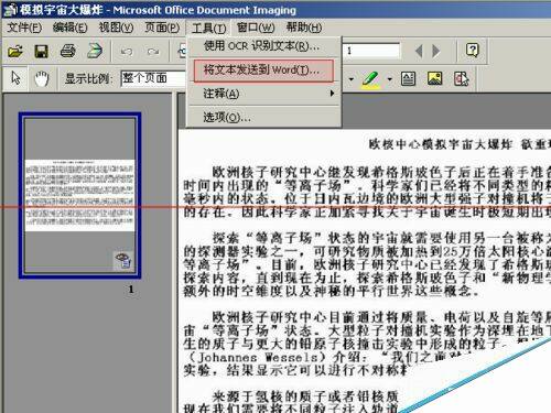 点击“菜单栏”中的“工具”选项中的“将文本发送到word”。