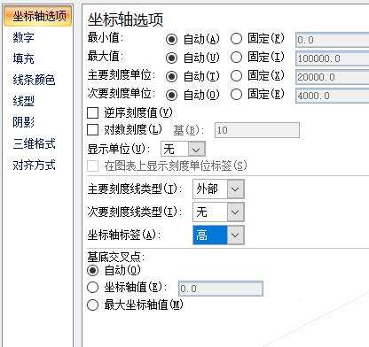 5、设置横坐标轴格式。同步骤4 进行横坐标轴的设置,标签选择高