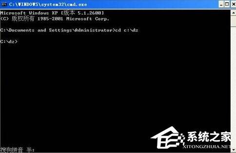 3、首先输入 cd c:\dz 注意有空格。这个命令是进入dz文件夹。