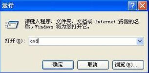 2、在开始的打开里面输入cmd进入cmd程序。