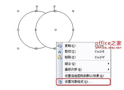 图3两个圆圈重叠后,点击鼠标右键,在WPS弹出的快捷菜单中选择“设置对象格式”。参见图4: