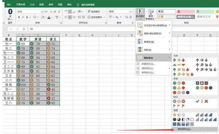 Excel表格使用图标标识成绩的操作方法