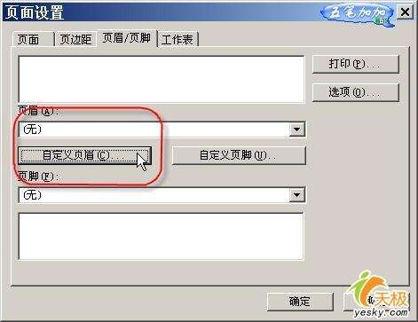 如果我们还希望能有一个总的标题,那么我们可以点击菜单命令“文件→页面设置”,然后在打开的对话框中点击“页眉/页脚”选项卡,点击“自定义页眉”按钮来进行设置,如图6所示。