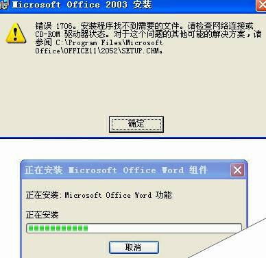 第一可能是您的安装文件不存在或者你是使用的精简版的操作系统,如果是安装文件不存在可以试试下载一个完整版的 office2003 的安装程序试试