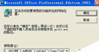 您最初是从网络管理员安装中安装了 Office , 此网络管理员安装已不再可用 当 Windows 安装程序提示您提供 Office 的源位置时,您尝试使用 Office 光盘。因为管理员安装中的文件已解压缩,而 Office 光盘上的文件是压缩的,Windows 安装程序无法解析这两个源类型之间的差异。