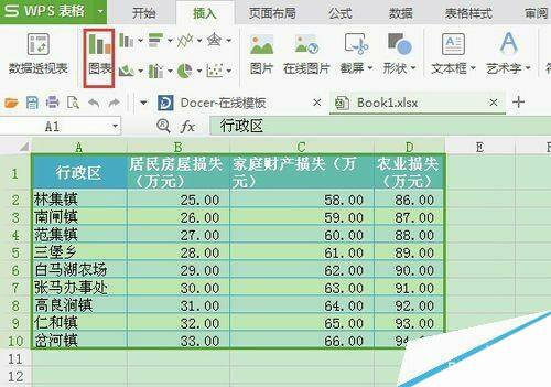 2、选 中所有非空单元格,然后在菜单栏中选择 “插入”——“图表”,单击。