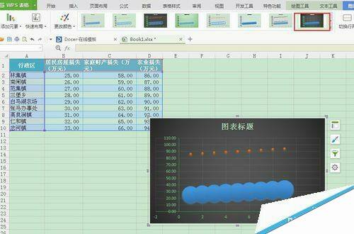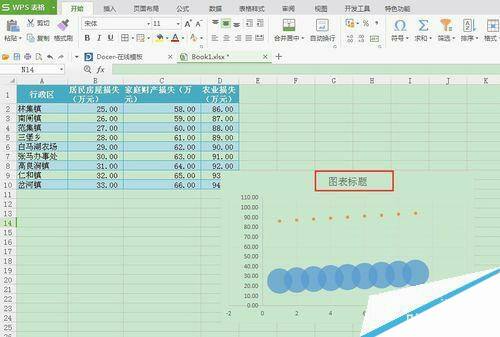4、随之就生成了气泡图,图表标题没有设置,可以对标题文本进行修改。