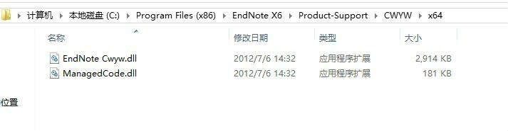 2.在安装endnote的硬盘找到EndNoteCwyw.dll的位置,注意应该有两个,因为是64位的,所以要注意是在64位的文件夹下面