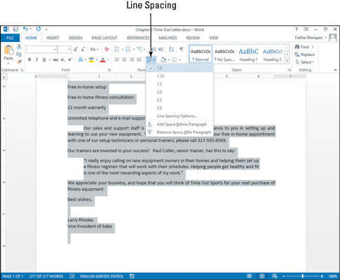 要进行更多练习,请将刚格式化的段落的字体大小设置为24点,然后观察行距发生了什么。完成实验后,请按Ctrl + Z撤消更改。