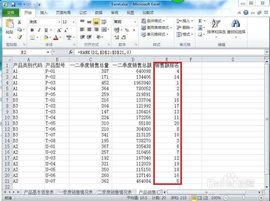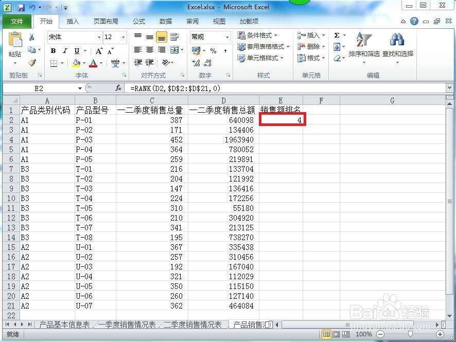 hmoban 办公教程 2024-03-16 Excel怎么排名次不改变位置 办公教程导读 收集整理了【Excel怎么排名次不改变位置】办公软件教程,小编现在分享给大家,供广大互联网技能从业者学习和参考。文章包含142字,纯文字阅读大概需要1分钟。 办公教程内容图文 2、在E2的单元格中输入=RANK。 4、其中,0代表的是按照降序排序列表,1则代表的是按照升序排列列表。 6、这样,就可以在不改变数据顺序下进行排序了。 办公教程总结 以上是为您收集整理的【Excel怎么排名次不改变位置】办公软件教程的全部内容,希望文章能够帮你了解办公软件教程Excel怎么排名次不改变位置。 如果觉得办公软件教程内容还不错,欢迎将网站推荐给好友。 hmoban主题是根据ripro二开的主题,极致后台体验,无插件,集成会员系统自学咖网 » Excel怎么排名次不改变位置