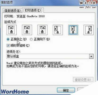 第3步,切换到“打印选项”选项卡,用户可以在此处设置信封的送至方式。完成设置后单击“确定”按钮即可,如图2011072914所示。