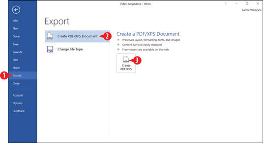 以上是为您收集整理的【如何在Word 2016中创建报告的PDF或XPS版本?】办公软件教程的全部内容,希望文章能够帮你了解办公软件教程如何在Word 2016中创建报告的PDF或XPS版本?。