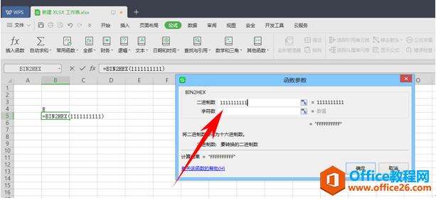 WPS excel将二进制数转化为十六进制的BIN2HEX函数