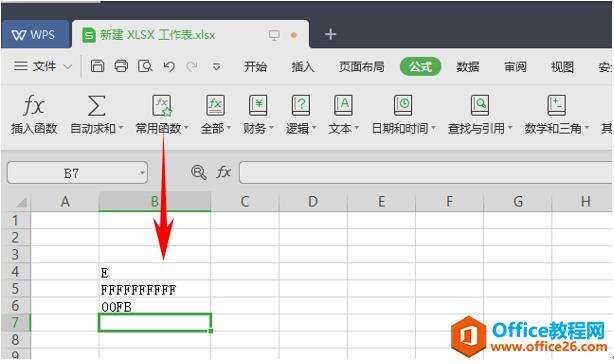 在表格内任意单击一个单元格,并在输入栏中输入“=BIN2HEX(1110)”