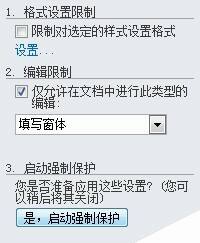 4、然后选“填写窗体”,点启动强制保护,输入保护密码退出。
