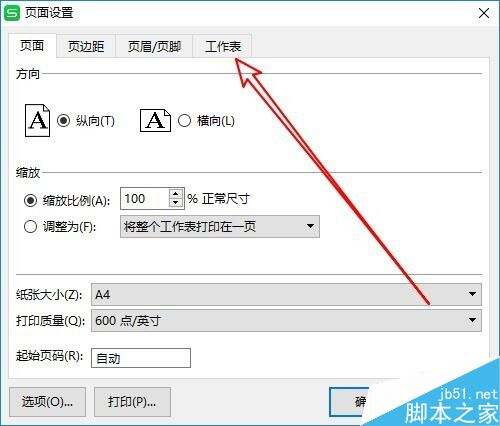 接着在打开的页面设置窗口中,我们点击“工作表”的选项卡。