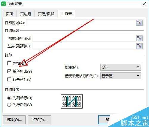然后在打开的工作表窗口中,我们找到“单色打印”的设置项。