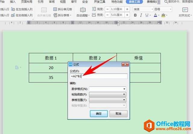 如果想要计算乘值,在公式当中输入=A2*B2,单击确定: