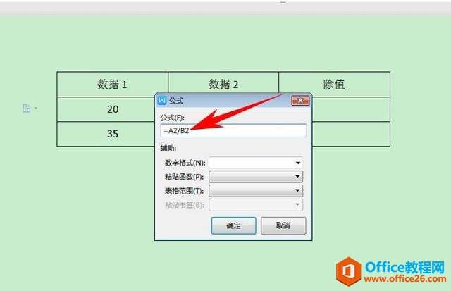 除值也是一样的计算方法,在公式当中输入=A2^B2,单击确定: