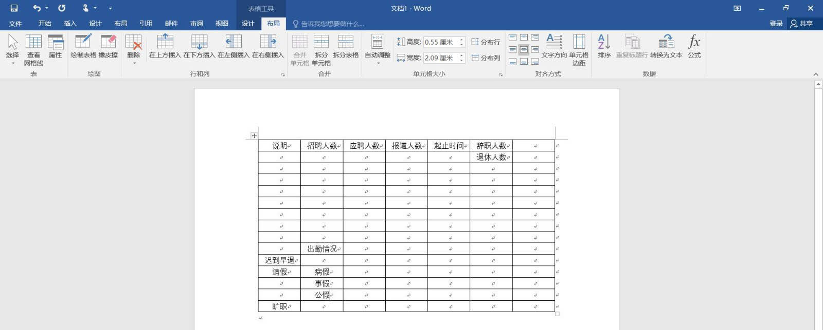 以上是为您收集整理的【word怎么快速制作人事部月报表模板?】办公软件教程的全部内容,希望文章能够帮你了解办公软件教程word怎么快速制作人事部月报表模板?。