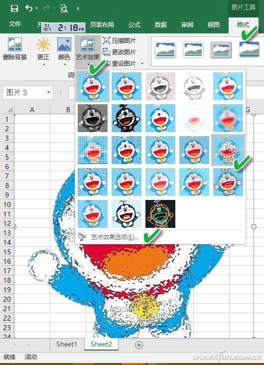 如果对上述自动化套用的效果不满意,还可以通过“艺术效果”菜单,选择各种图片艺术效果模板,或者通过“艺术效果选项”进行更加自由的效果设置。