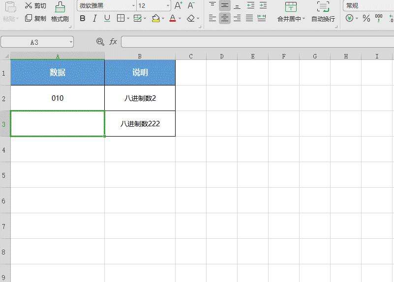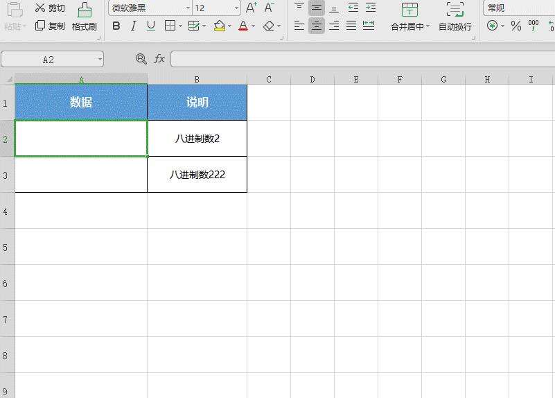 第二个例子,选中(A2)单元格,我们输入八进制数(222,)转换成二进制数。第二个参数省略不填,那么函数用能表示此数的最少字符来表示,也就说不会补零。