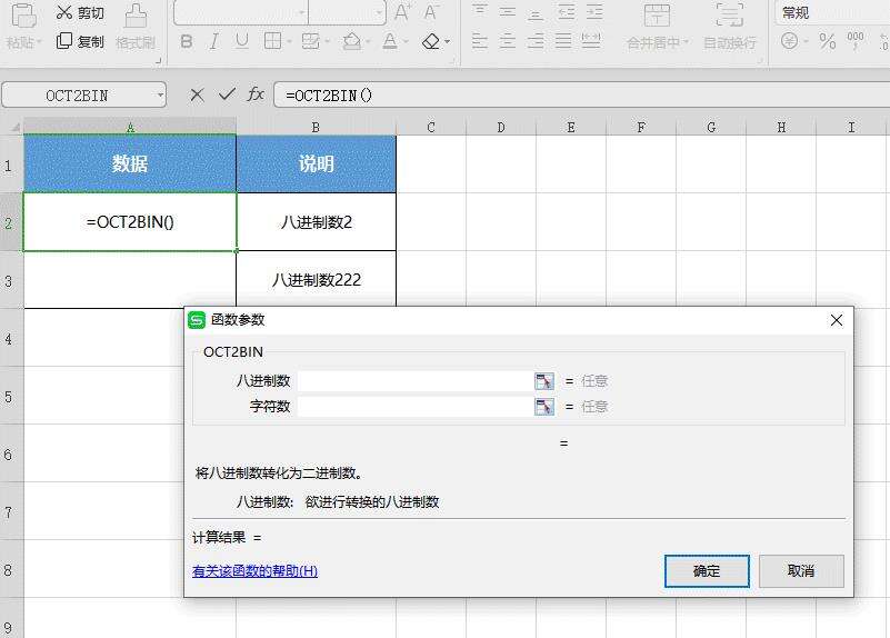 WPS excel OCT2BIN函数如何将八进制数快捷转换成二进制数