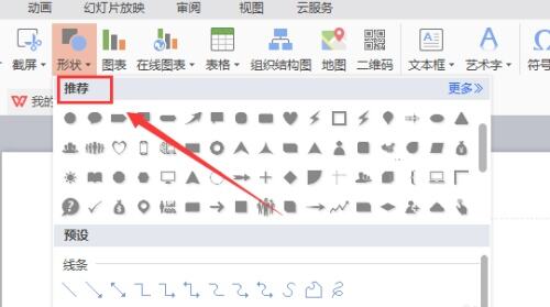 5.在推荐选项中找到燕尾箭头选项