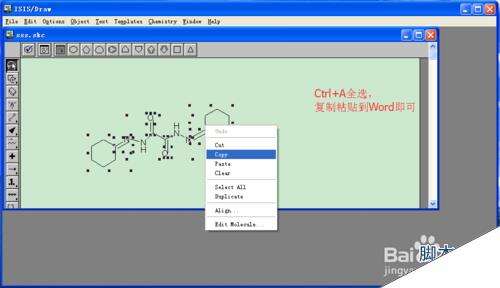 ISIS DRAW很好用,和系统自带的画图差不多,直接点击所需要的形状,在合适的位置放置即可。如本例中”双环己酮草酰二腙”的完成主要用到了左侧工具栏的四种工具。保存文件,以备用。