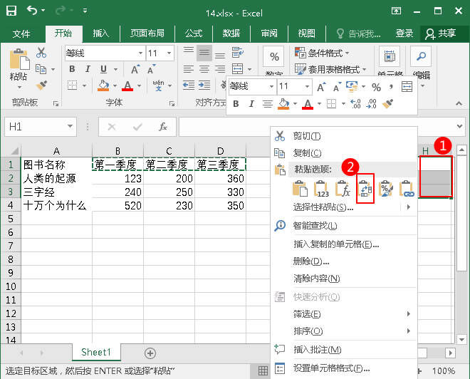 3.然后选择H1: H3区域,点击鼠标右键,在粘贴选项中找到“移调”。