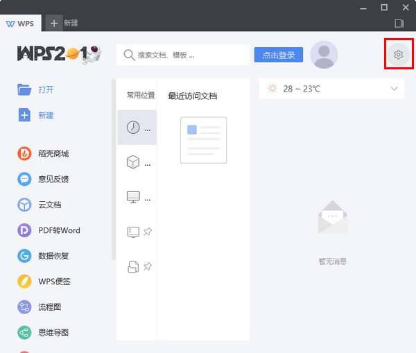2、打开 WPS 2019 的主界面以后,点击右上角的设置图标。