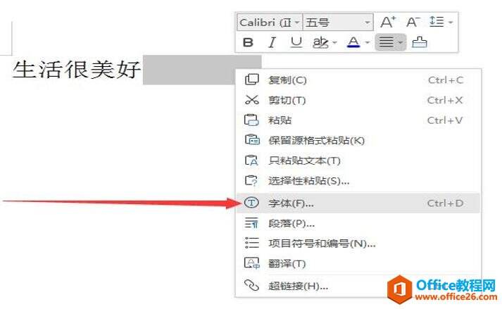 步骤四:选中【空格键】空出来的位置,鼠标右键,选择【字体】:
