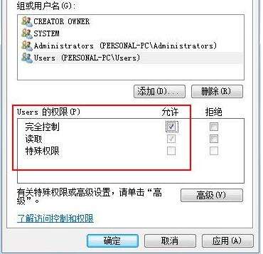 ④将user用户允许完全控制,这样就解决了无法加载的问题。