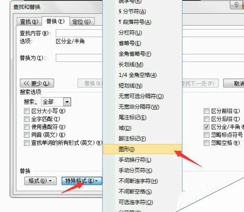 4、点击特殊格式按钮,在展示出来的选项中,选择图形按钮,点击该图形按钮,即可