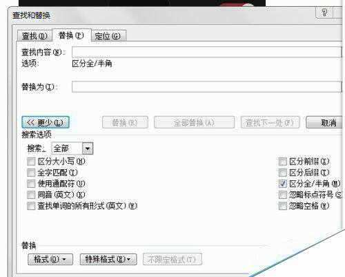 3、点击文字查找和替换的输入框中的“更多”按钮,展示出更多的查找替换选项