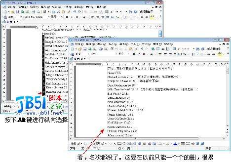 记住纵向选择的要领:“Alt”键。不止是用来处理名单,在编辑由表格转换来的文字时,纵向选择也是个非常有用的功能。