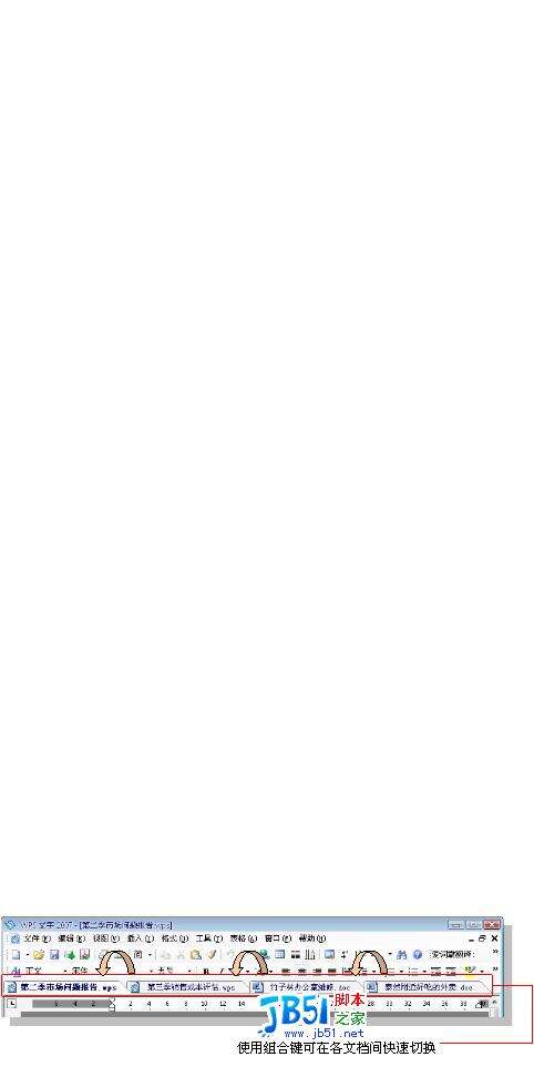 我比较喜欢WPS文字标签式文件打开方式:在一个WPS文字程序里可以打开若干个文档,让任务栏看上去干净许多,也避免了窗口过多造成的窗口层叠。但在各文档间进行切换时,移动鼠标来回点击就显得有些浪费时间,而且有时不小心连续点两下,还会把文档给关掉。这时,快速切换功能就很管用了。
