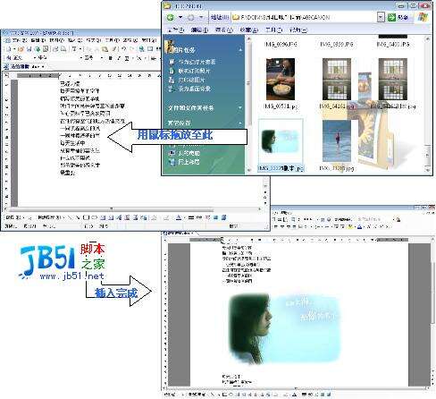 在WPS中,再也没有比直接拖放更方便的图片插入方式了,不论在文字、表格,还是演示组件下,打开存有图片的文件夹,用鼠标点中想要的图片,把它拖到WPS中,然后把鼠标指针对准想要放置图片的地方松开,图片立即插入。
