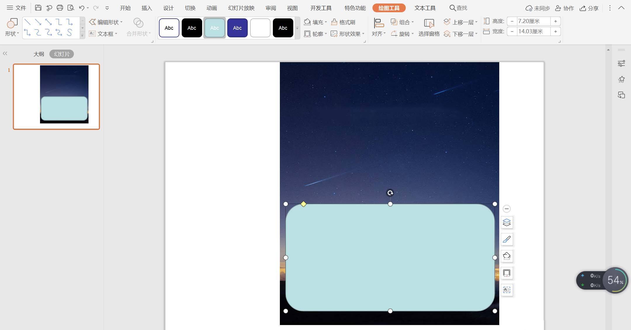 2、接着再插入一个圆角矩形,放置在风景图的合适位置。