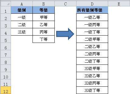 需要把“级别“与“等级“的所有组合列出来,有三个级别、四个等级,所以组合的可能性有3*4=12种。