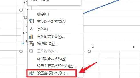 2、右键后会弹出一个菜单,选择“设置坐标轴格式”