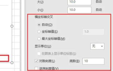 4、除了数据外,还可以修改交叉、显示单位、对数刻度等选项。