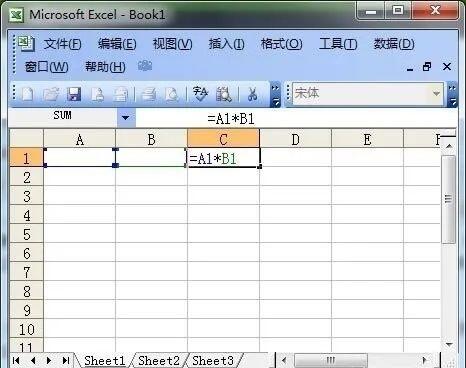 我们先从简单的说起吧!首先教大家在A1*B1=C1,也就是说在第一个单元格乘以第二个单元格的积结果会显示在第三个单元格中。