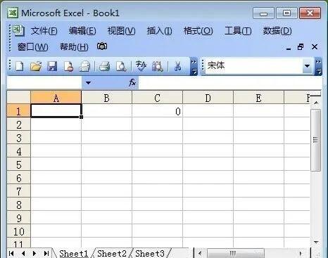 ②输入完毕以后,我们会发现在 C1 单元格中会显示“0”,当然了,因为现在还没有输入要相乘的数据嘛,自然会显示0了。