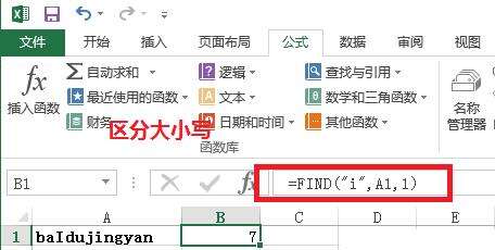如图所示,百度经验中第一个I是大写,所以在进行查找时,返回7。