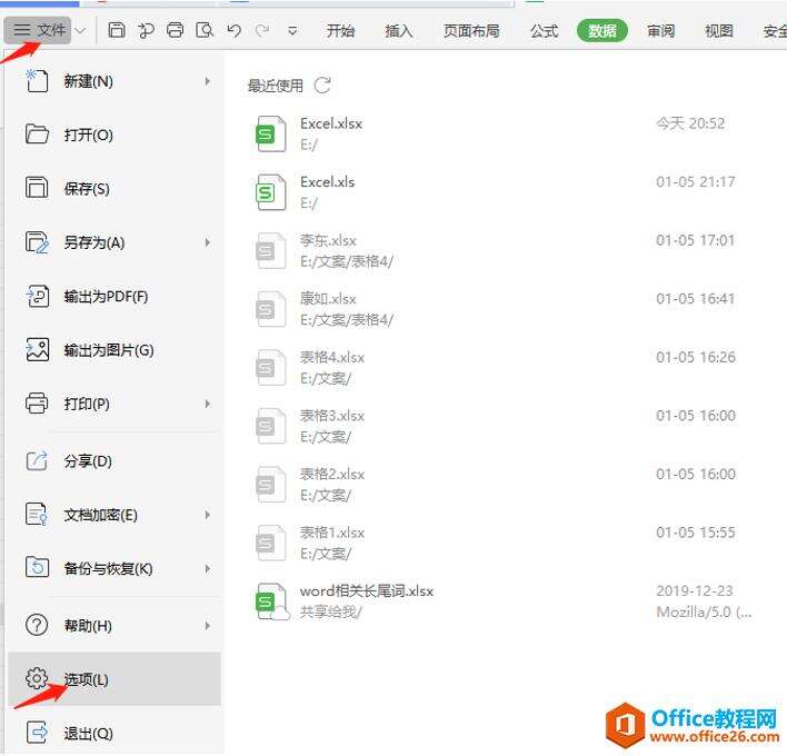 我们下拉单元格,没有填充变化。我们点击左上角按钮【文件】,再点击【选项】: