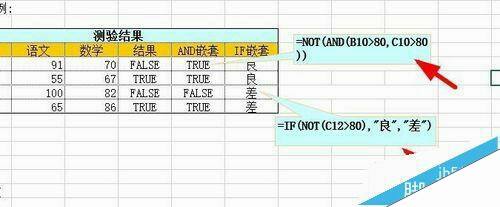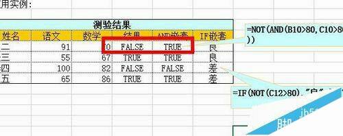 5、在如图示的案例中,我们使用NOT函数计算AND函数或OR函数的结果的反结果。