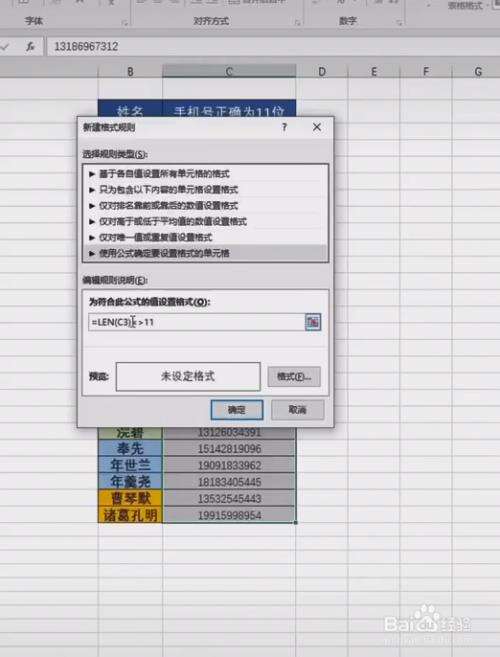 4、接着,我们把这个公式输入进去,他的意思就是 c三单元格不等于11的时候;